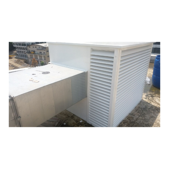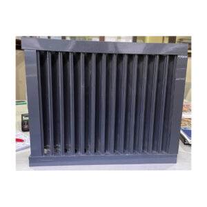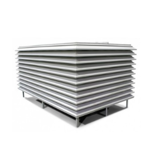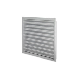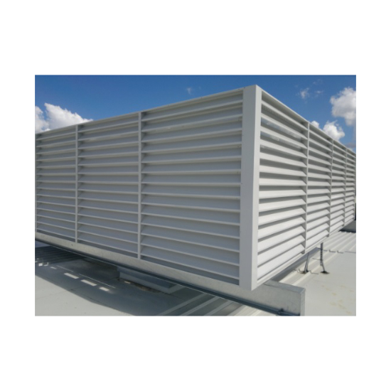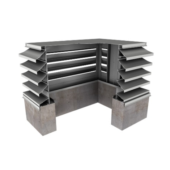 GMCAIR stationary louvers feature alloy 6063-T5 extruded aluminum blades. The louver features a “Z” blade profile in a 7cm deep assembly with the blades positioned at a 45° angle. This Z-blade louver is available with visible mullions that are joined with an extruded aluminum “I” connection, or continuous horizontal blades that utilize concealed blade braces and hidden vertical supports in place of jamb frames to present uninterrupted horizontal blade appearance.