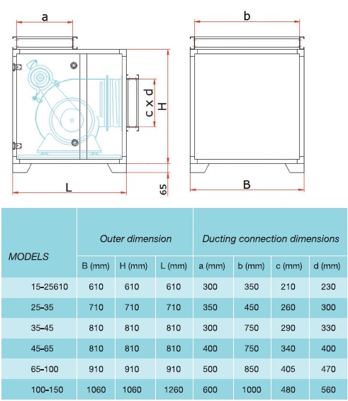 Carcass of GECO series cell type aspirators is made of 1 mm-thick and internal metal sheet is made from 0.8 mm-thick galvanized steel. External (salar) is painted with electrostatic dye. 70 kg/m3density stone wool is used as filling material in cell panels.