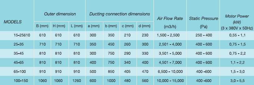 * Usually used for commercial and industrial areas to extract polluted air or supply fresh air.