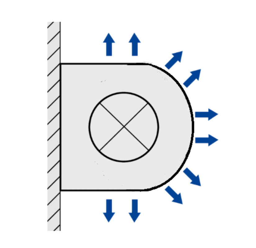 Displacement flow diffusers discharge the air from air conditioning systems with a low velocity and near the floor. The low-turbulence airflow creates a pool of fresh air that covers the entire floor area. The convection from people and other heat sources causes the fresh air from the pool to rise and create comfortable conditions in the occupied zone.
