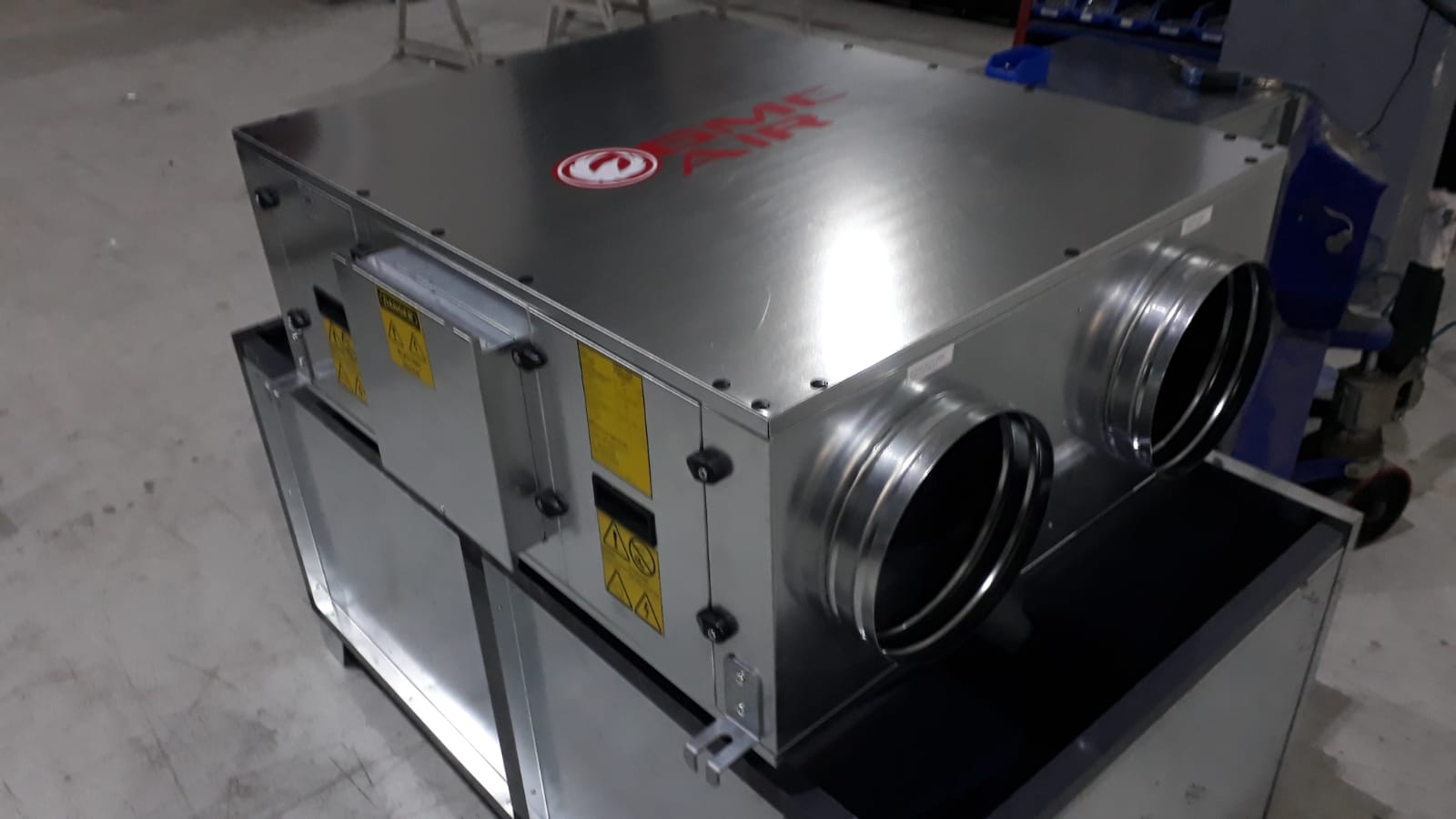 - Compact structure (fresh air fan + exhaust air fan + plate type heat exchanger + evaporator + condenser + compressor + cooling equipments),