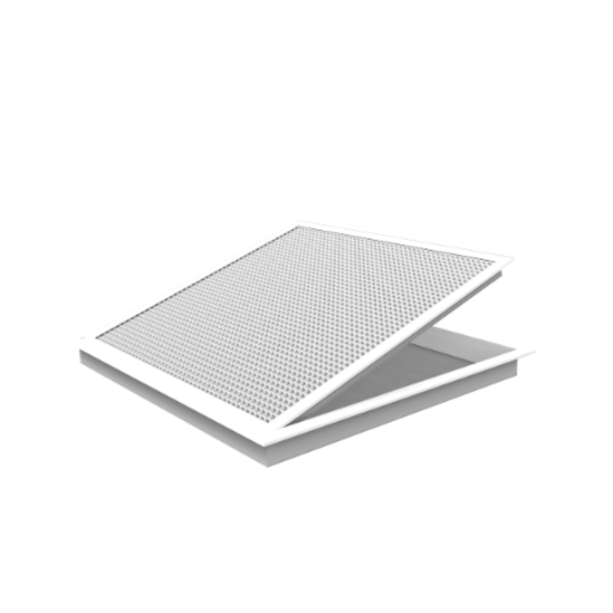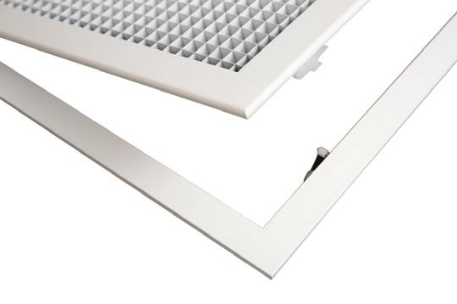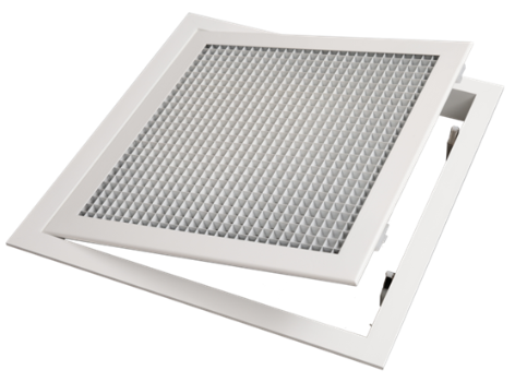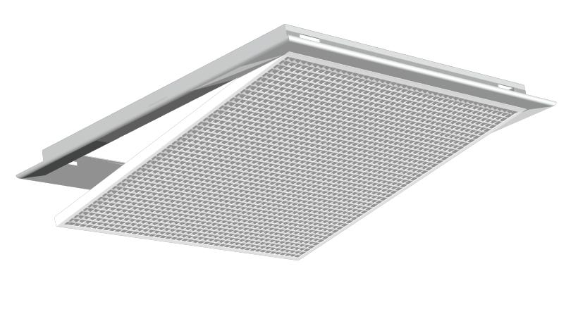 The grille type KPM is used for the exhaust of large quantities of air with minor pressure loss and as access door for the equipment like fan-coil etc. The access door opens and closes on a push-push action. It locks on the first push and releases with the second push.