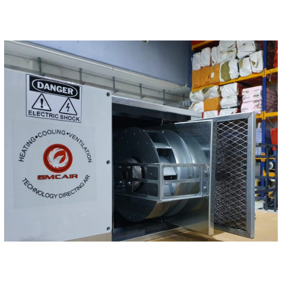 • High air flow rates and pressures are met by statically and dynamically balanced double suction fans with self drive or belt-pulley drive.