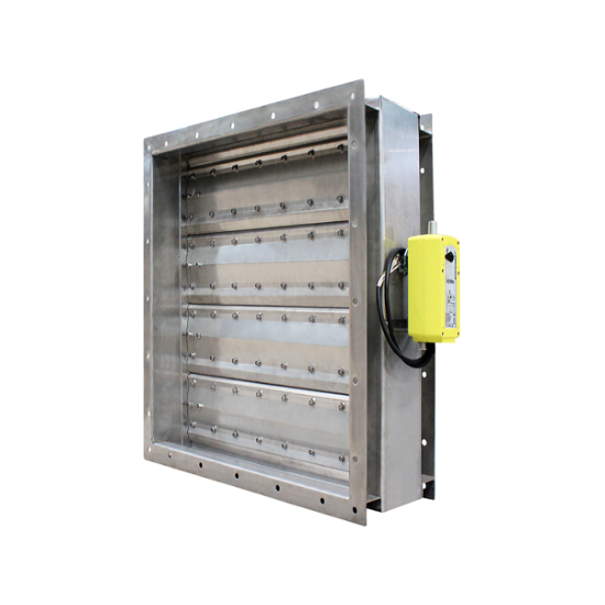 The MD A60 multiblade Marine Fire Damper is designed for use on marine vessels to protect the integrity of fire rated bulkheads and decks. Each A60 damper is controlled by an electrical failsafe spring return actuator combined with a thermoelectric tripping device (thermal fuse) and volt free contacts for remote status indication. The A60 damper can be used where the maximum system pressure is 2000 Pa and duct velocities do not exceed 20 m/s. The A60 Marine Fire Damper has been tested in accordance with EN1751 with case leakage conforming to classes A, B and C and closed blade leakage to class B. The A-60 Marine Fire Damper is suitable for both vertical and horizontal applications, with airflow in either direction. MED certified for A60 fire performance. Conforms to Commission Implementing Regulation (EU) 2018/773.