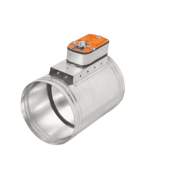 Large circular fire damper for the isolation of duct penetrations between fire compartments, available in nine nominal sizes